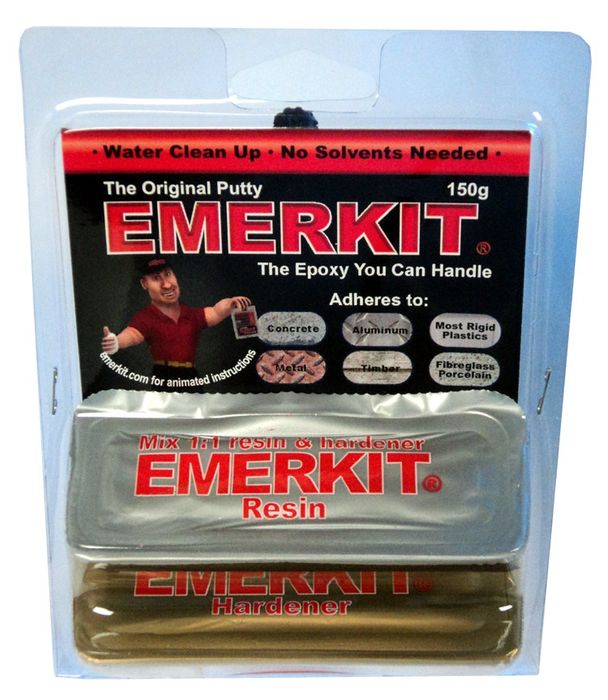 Emerkit is a two part, 1:1 ratio epoxy suitable for a multitude of uses. Simply mix the resin with the hardener, and with wet hands, mold into any virtually any shape you require. Emerkit does not run or drip and can be smoothed with water to give the desired finish.